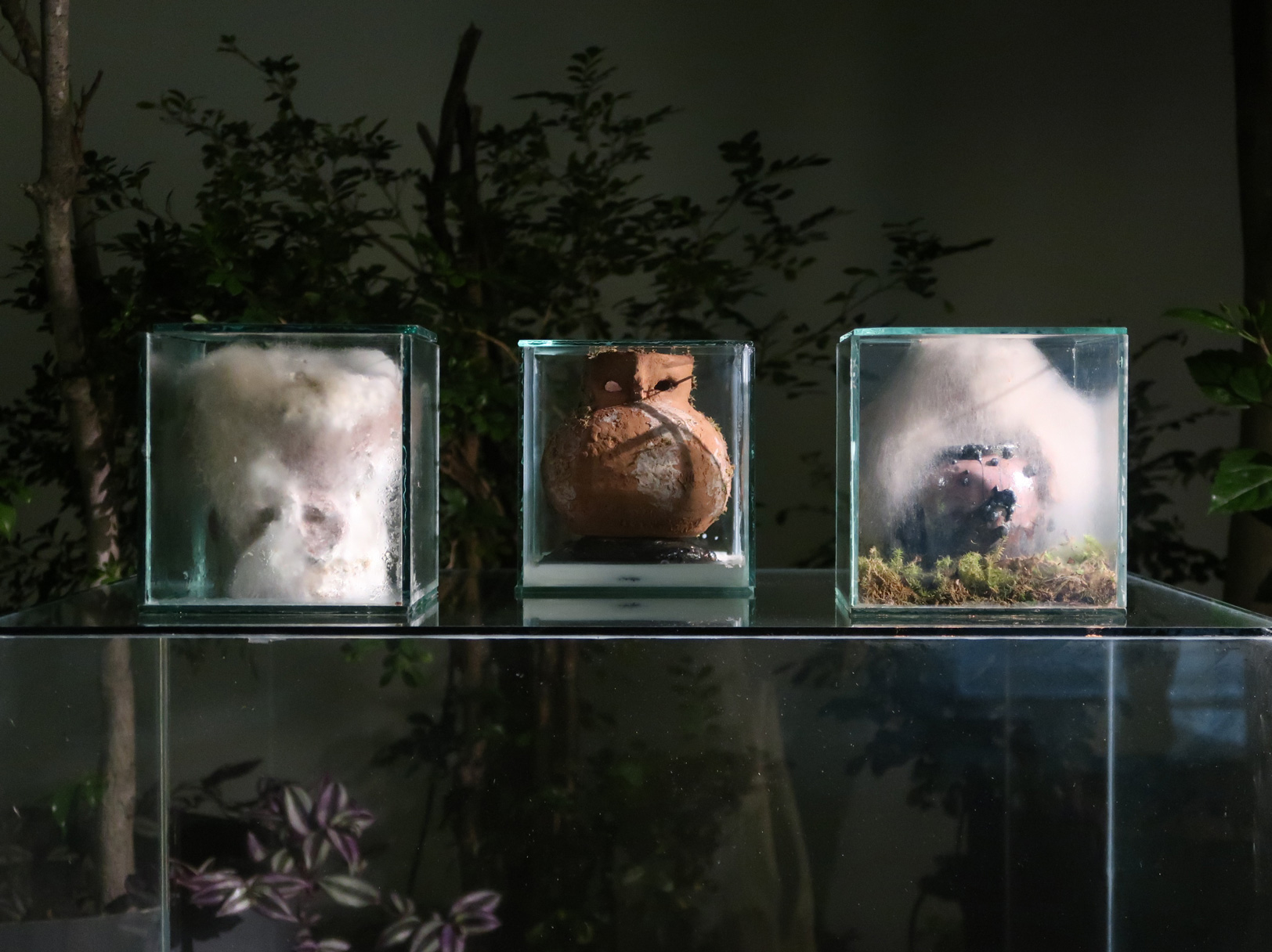 - Waste : liquid screens from local recovery circuits, broken anthropomorphic vases inspired by Bolivian archaeological fragments where the rot of different spilled liquids grows (beer, milk, dulce de leche).